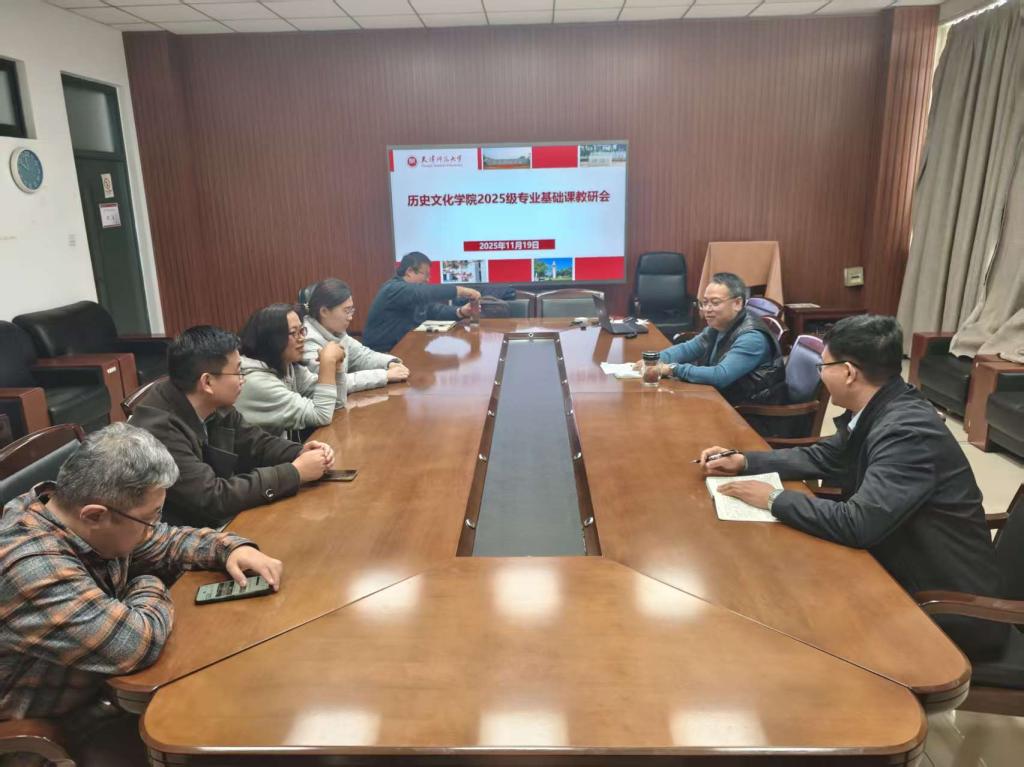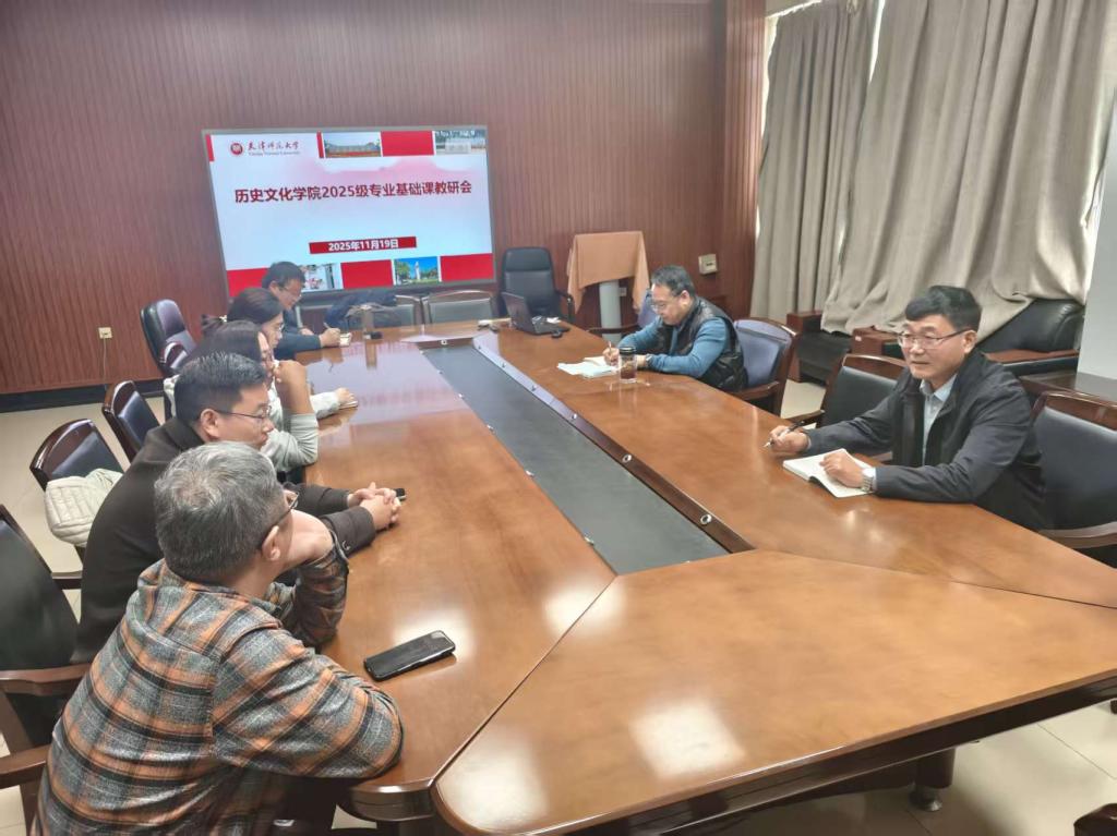为响应新时代新文科建设要求,顺应高等教育发展新形势,提高教学质量,历史文化学院于11月19日召开2025级专业基础课教研会,会议由院长张乃和教授主持,教学副院长王玉亮教授及负责讲授2025级专业基础课的孙晶晶、郑阳、姜启舟、于双远、戴瑶玲等老师参加交流研讨。