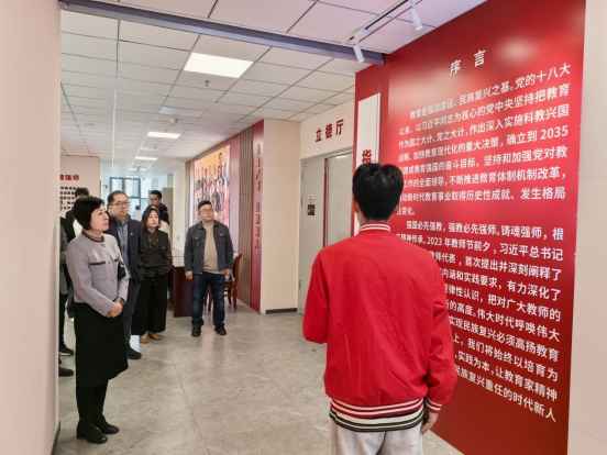 在天津市教育家精神培育弘扬研究实践中心,全体人员在讲解员的引导下,依次参观了“师道溯源”“精神谱系”“时代楷模”等主题展区。展馆内,一幅幅珍贵的历史图片、一件件泛黄的教案手稿、一段段生动的影像资料,全景式展现了从近代教育先驱到当代育人楷模的奋斗历程。青年教师们驻足于张伯苓、严修等津门教育名家的展板前,细读其“爱国三问”的时代回响;在“人民教育家”于漪、卫兴华等楷模的事迹长廊中,深刻体悟“一辈子做教师,一辈子学做教师”的赤诚情怀;在李继之、徐大同、沈德立等师大“大先生”的感人事迹中更加深切认识到赓续师范荣光,不断推进事业高质量发展的使命与责任。