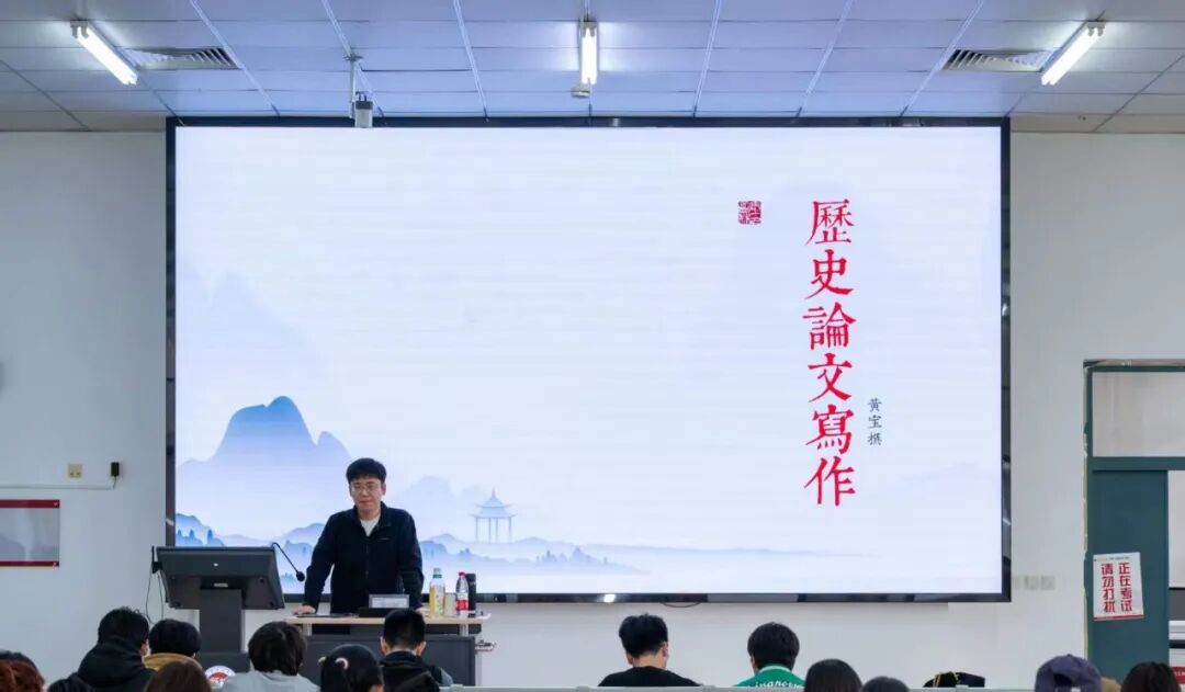 为进一步强化同学们的学术研究能力,夯实论文写作根基,2026年4月9日,历史文化学院于劝学楼B115成功举办论文写作指导讲座。本次活动有幸邀请到历史文化学院黄宝撰老师。黄老师以“文章不写半句空”为主题,为同学们带来一堂中国近代史文献的入门“必修课”。