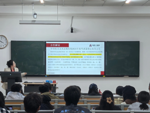 本次讲座特别邀请知满天国考专家红晨老师主讲。红晨老师围绕国考选岗策略与报考全流程,为同学们展开介绍,紧密贴合历史学类学生需求。