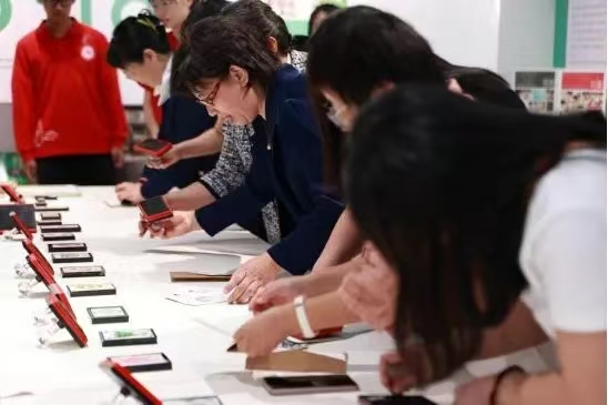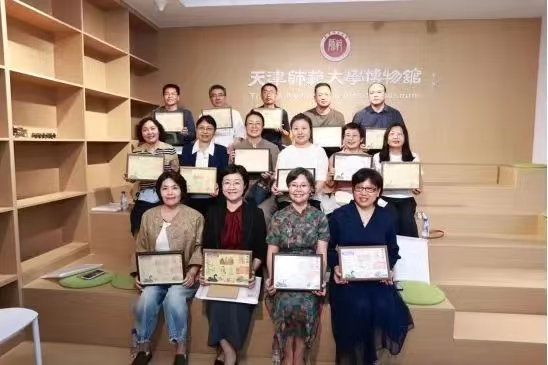在天津师范大学博物馆内,教师代表李海涛、李学智、张浩、韩丽、张建梅带领校友们开启了沉浸式文化体验之旅,参观馆内“金辉隐”“泥火幻”“笔底春”“昆山璞”“百工宝”五大主题展区。师生还共同加盖文物印章、签名,制作毕业三十年特殊纪念封,承载青春与母校记忆。