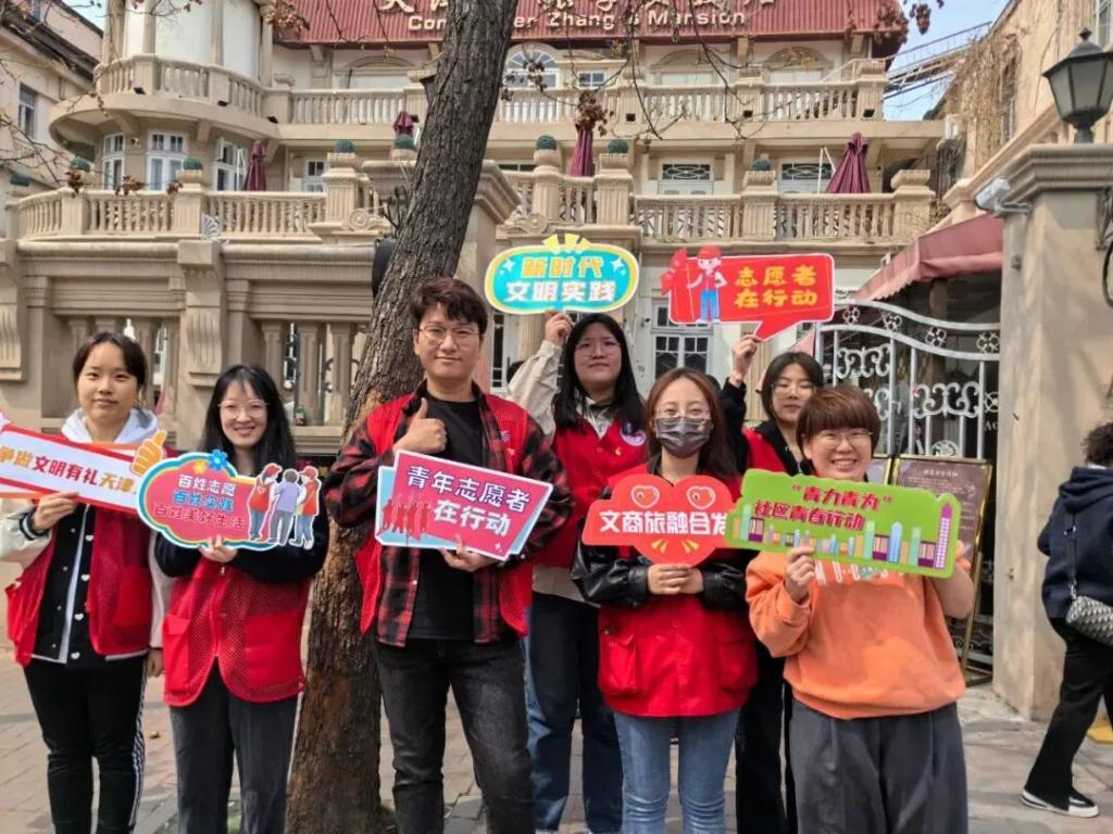 习近平总书记在天津考察时指出:“以文化人、以文惠民、以文润城、以文兴业,展现城市文化特色和精神气质,是传承发展城市文化、培育滋养城市文明的目的所在”。历史文化学院青年学子积极投身社会实践,用实际行动助力天津城市建设,践行“四个善作善成”。在“第二届五大道海棠花节”期间,天津师范大学历史文化学院与和平区劝业场街道花园路社区党群服务中心合作开展“津遇和平·春日海棠”志愿服务活动,组织学院青年学子共计80余人为海棠花节提供志愿服务。