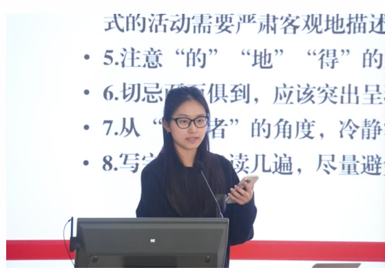 当前,校园新闻报道中存在诸多共性难题,如专业性与可读性难以兼顾,客观表述与生动表达不易平衡,价值引领与信息传递未能有机融合等。针对这些痛点,刘浩志与张钰婧作为校园媒体资深负责人,从新闻稿主体写作部分切入,带来一线采编经验与专业洞察:一是坚持客观表述,规范使用“历史文化学院”“实践团队”等称谓,避免“我队”“大家”等主观词汇;二是注重信源引述,通过“团队成员表示”“参会师生指出”等句式传递观点,规避主观推断;三是保持记者视角,不使用“学长”“学姐”等非正式称呼;四是强化内容提炼,突出读者关注的核心信息,避免面面俱到;五是严格用语规范,精准把握“的、地、得”使用、近义词替换与标点符号运用等。此外,两位主讲人特别强调,新闻稿件应秉持正能量传播导向,确保内容真实准确,严禁出现政治性错误与敏感信息。