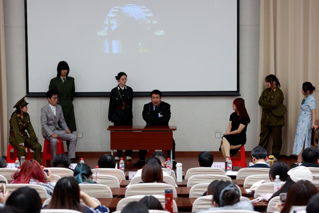在比赛中,六支团队以精彩的表演深刻诠释了红色文化的魅力。其中,2502班《风声》、2504班《怀瑾握瑜》、2406与2506班联合呈现的《泊秦淮》,从不同历史切面切入,以细腻笔触展现先辈在困境中坚守信仰、守护家国的赤诚,令人动容;2401班《书脊撑山河》、2402班《脊梁》、2403班《第一枪:众志》回望烽火岁月,生动再现文人、战士等群体以热血铸山河的壮阔画卷,尽显青春力量。此外,受邀助演的舞话漫游社话剧《华新纱厂》聚焦历史实业,在舞台上重现先辈实业救国的坚韧足迹;文学院阳光话剧社的《阳光里的微笑》传递温暖力量,以鲜活演绎让红色精神在舞台上焕发新的光彩,为整场话剧节增添了动人的温度。