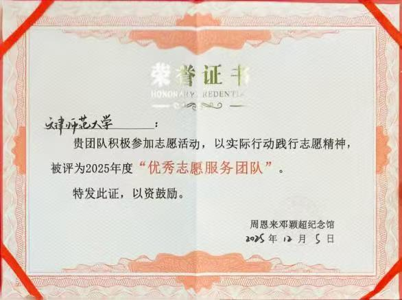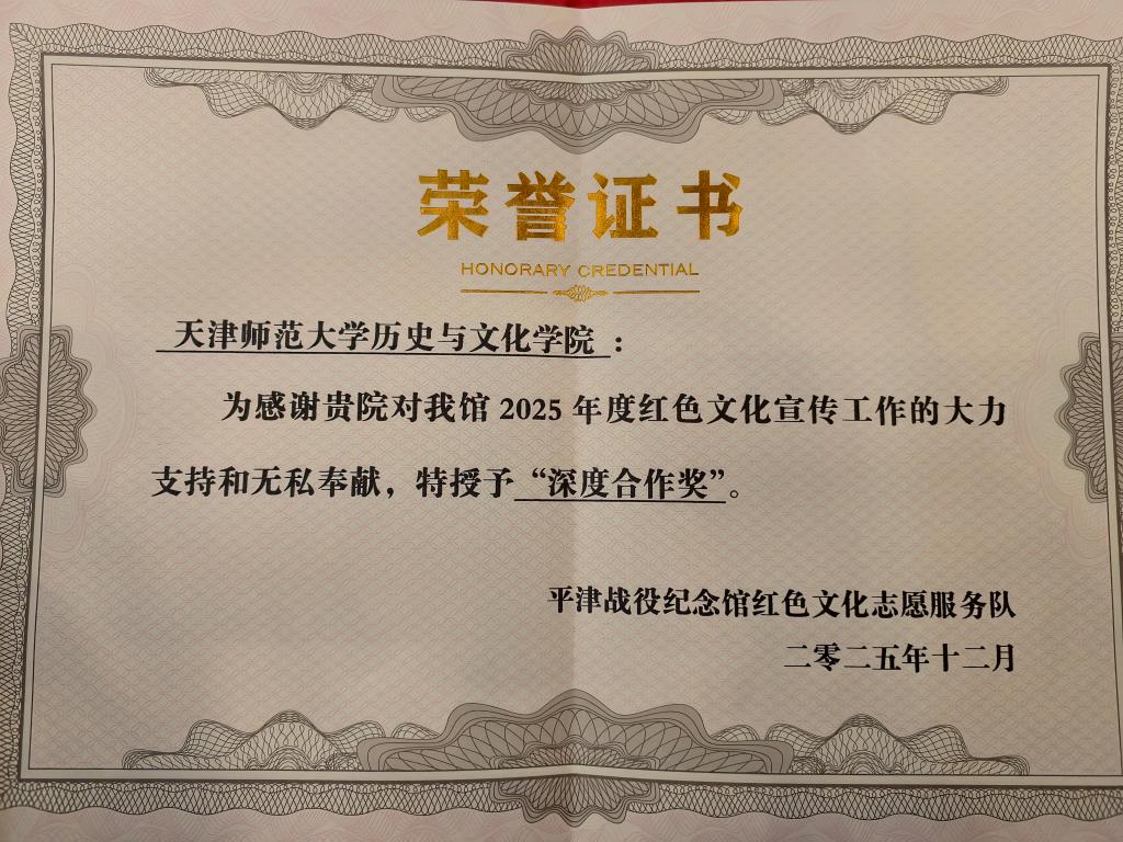 以志愿服务为立足点的社会实践是学院团委“行走的历史思政课”的重要组成部分。过去一年里,求是学社学子深耕文化场馆志愿服务一线,以专业力量传递历史温度,荣获周恩来邓颖超纪念馆2025年度“优秀志愿服务团队”称号。天津博物馆分社志愿者吴安阳、成印良、徐冉以及周恩来邓颖超纪念馆分社志愿者刘思彤、杨彩莉,凭借扎实的知识储备与真诚的服务态度,深耕讲解岗位,获评“优秀志愿者”称号。在平津战役纪念馆2025年度志愿者表彰大会上,我院荣获“深度合作奖”,赵辰北同学荣获“最佳传播之星”奖项。在青年梦想家志愿服务中心主办的“志愿同行,聚力筑梦”暨12·5国际志愿者日经开区企业青年志愿服务创新发展研讨会上,学院荣获2025年度“志愿服务先进集体”称号。这些荣誉的获得不仅是对学院志愿工作的高度肯定,也体现了学院与各实践基地深化合作、协同推进志愿服务高质量发展的丰硕成果。在国际博物馆日“行走的历史课”城市寻访活动、第十八届“汉语桥”世界中学生中文比赛、2025年天津马拉松赛事、中国研究生“文化中国”主题研学等活动中都有我院学子的身影,持续展现出新时代青年的社会担当与专业素养。