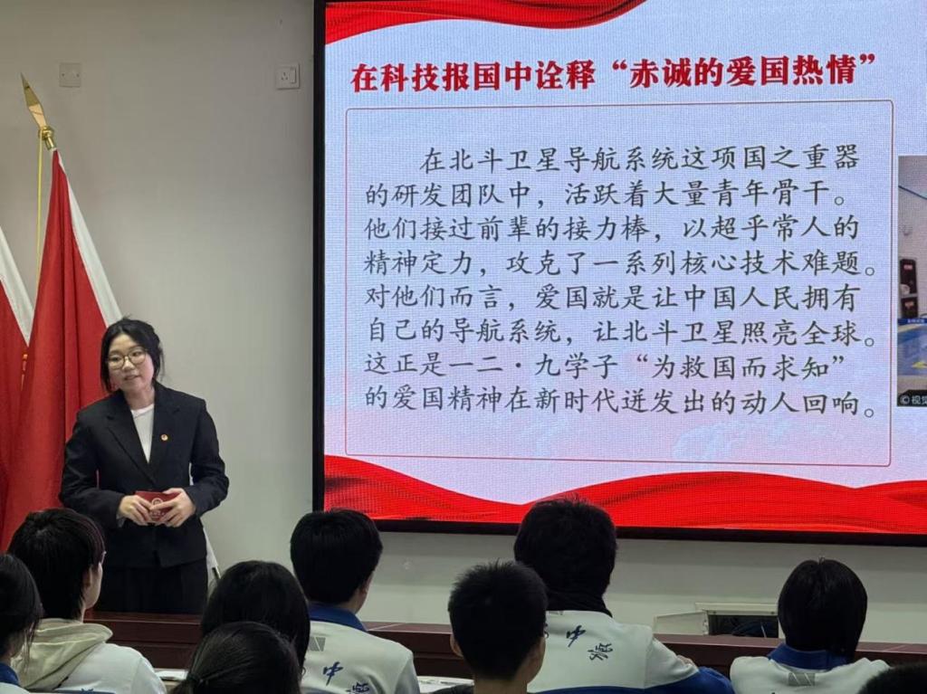 “一二·九”运动是中国近代史上具有重大意义的爱国运动,展现了一代青年强烈的民族责任感和使命感,开展主题团课,既是对革命先辈的深切缅怀,也是对青年一代的殷切期望。宣讲团成员首先回顾了“一二·九”运动的历史背景、主要过程和深刻意义,结合史料,进一步阐释了“一二·九”运动所彰显的赤诚爱国主义,坚定抗争信念,广泛团结奋斗和自觉跟党向心的历史精神。从科技创新到乡村振兴,从绿色发展到社会服务和卫国戍边,宣讲团成员动情讲述“一二·九”运动的历史精神如何映射时代洪流,不断激励着有志青年投身中国式现代化的生动实践中,诞生了一批批可歌可泣的动人的故事和鲜活榜样。