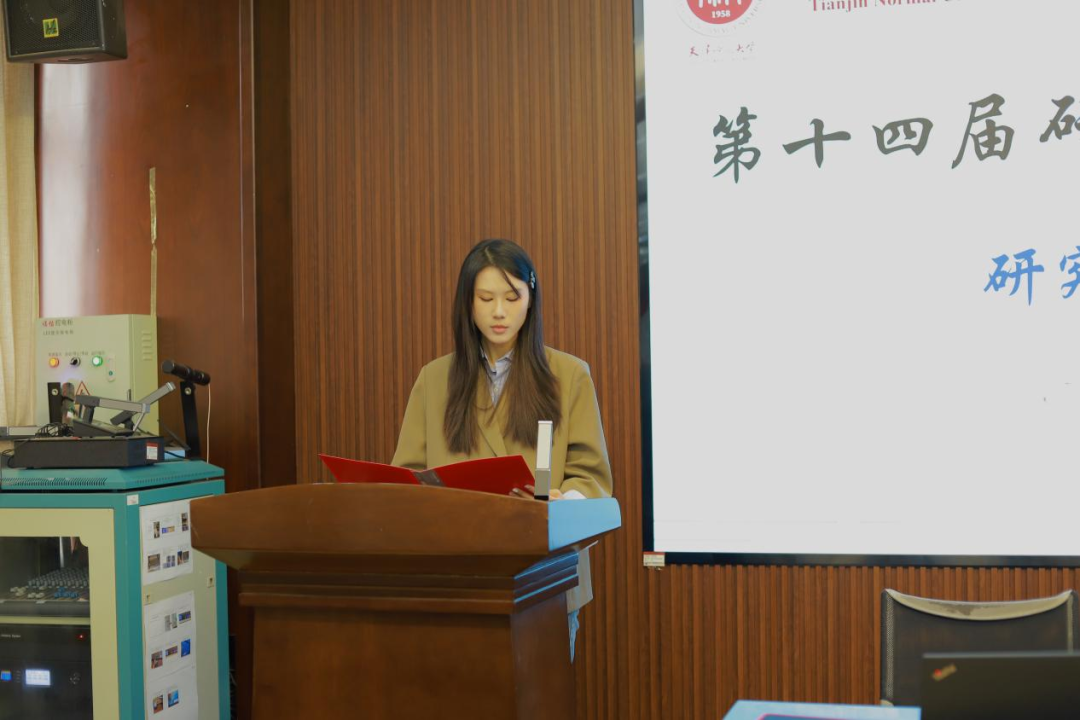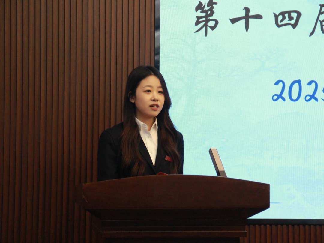 中国史专业2025级硕士研究生杨晓晨作为新生代表发言,结合参与学术节的体会、个人求学经历与历史学人的使命,分享三点感悟:以好奇之心探寻历史脉络,以求实之志恪守研究准则,以创新之思激活史学价值。她呼吁同学们秉持“古为今用”的学术追求,为推动学科进步、传承中华优秀传统文化贡献青春智慧。