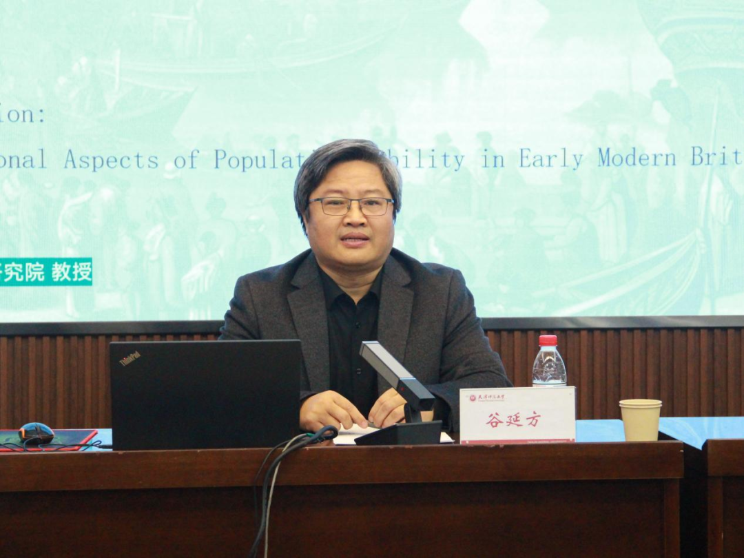 闭幕式结束后,欧洲文明研究院副院长、博士生导师谷延方教授为两院研究生作题为《城市化之外:近代早期英国人口流动的多重样态》的专题讲座。谷延方教授突破传统城市化叙述框架,将人口流动划分为标准与非标准两类,指出后者占比八成,构成当时社会结构的主体。他还剖析了人口流动的双重影响,强调历史研究应超越城市中心视角,关注普通人在历史进程中的作用,为学生拓展研究思路、打破思维定式提供了新的学术切入点。
