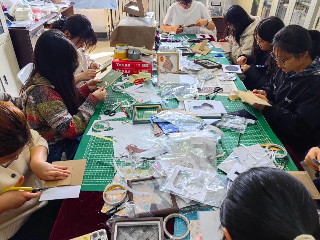 活动尾声,师生们围绕创作过程展开交流总结。大家纷纷表示,此次活动不仅让大家熟练掌握了宋锦装饰画的制作工艺,更深入理解了宋锦文物背后的历史文化内涵。从拓印剪裁的细致操作,到锦布装饰的审美表达,每一个环节都让非遗技艺不再遥远,而是成为可触摸、可创作的生活美学。此次联合活动搭建了师生互动、教学相长的文化实践平台,既让非遗宋锦文化在青年学子中扎根生长,也为传统文化的创新传承注入了青春活力。