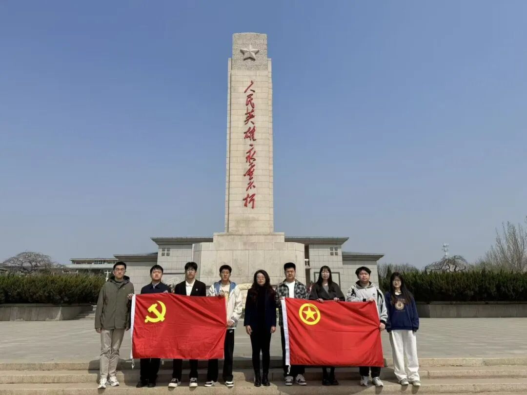 西青区烈士陵园内,同学们在纪念碑前庄严肃立,缅怀为民族独立、人民解放和国家富强英勇献身的革命先烈,并向烈士纪念碑敬献鲜花,表达对先烈的追思与敬仰。在纪念碑前,在党支部书记带领下,全体党员举起右拳,重温入党誓词,既是对革命先烈的告慰,也是对入党初心的重温,更是对责任使命的再次承诺。