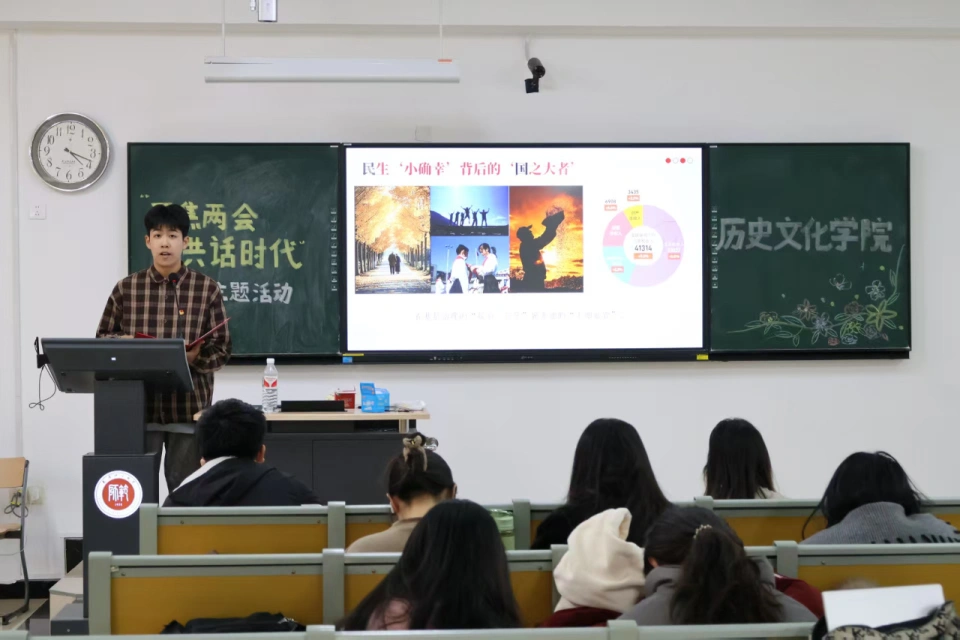 为全面贯彻党的二十大和二十届二中、三中全会精神,深入学习贯彻全国两会精神,进一步提升我院青年马克思主义者培养工程工作实效,增强学生的政治素养、社会责任感和使命感,历史文化学院、欧洲文明研究院“青马工程”培训班以“春天”为意象,将两会精神与青年奋进朝气相融合,组织筹办“聚焦两会,共话时代”主题研习会,为学生搭建学习交流平台。